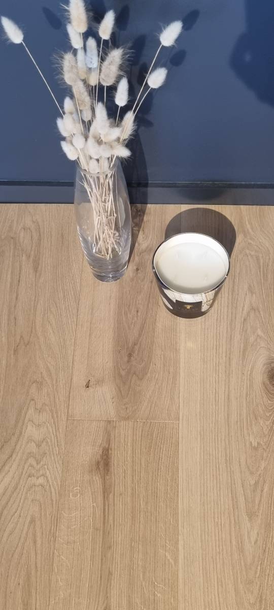 Pour l'entretien de votre parquet contrecollé NACRE en finition huilée, optez pour un savon naturel pour parquets huilés après le passage d'un balai ou d'un aspirateur.