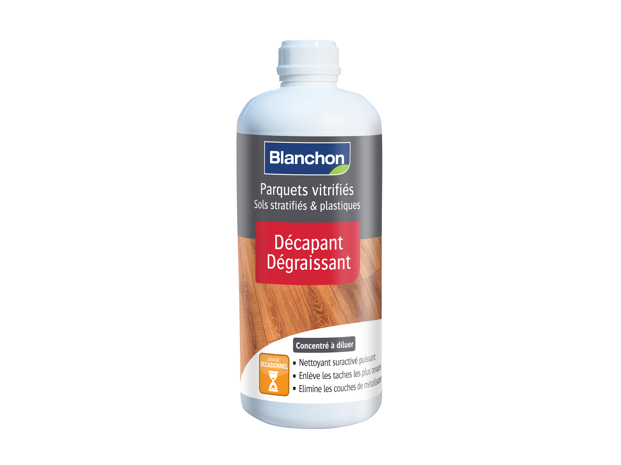 Le Nettoyant Décapant Dégraissant (1L) de la marque Blanchon est un produit à double usage : il élimine les couches de métallisation durcies et anciennes (dilution 10 à 20%) mais c'est aussi un puissant dégraissant et décrassant (dilution 5 à 10%) qui vient à bout des tâches les plus tenaces sur parquets vitrifiés, sols stratifiés et plastiques, sols durs. Il n'altère pas les vitrificateurs parquets.