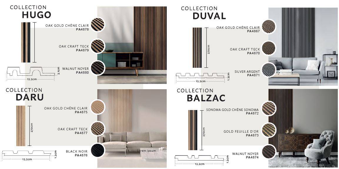 Avec son aspect doré mat contrastant sur un fond noir profond, le panneau BALZAC GOLD est une élément fort de votre décoration murale. Il s’intègre aussi bien dans un salon contemporain que dans un espace commercial ou un hall d’entrée, en apportant une touche de luxe sobre et originale. Son graphisme vertical structuré évoque les panneaux bois haut de gamme, tout en conservant une esthétique moderne et épurée.