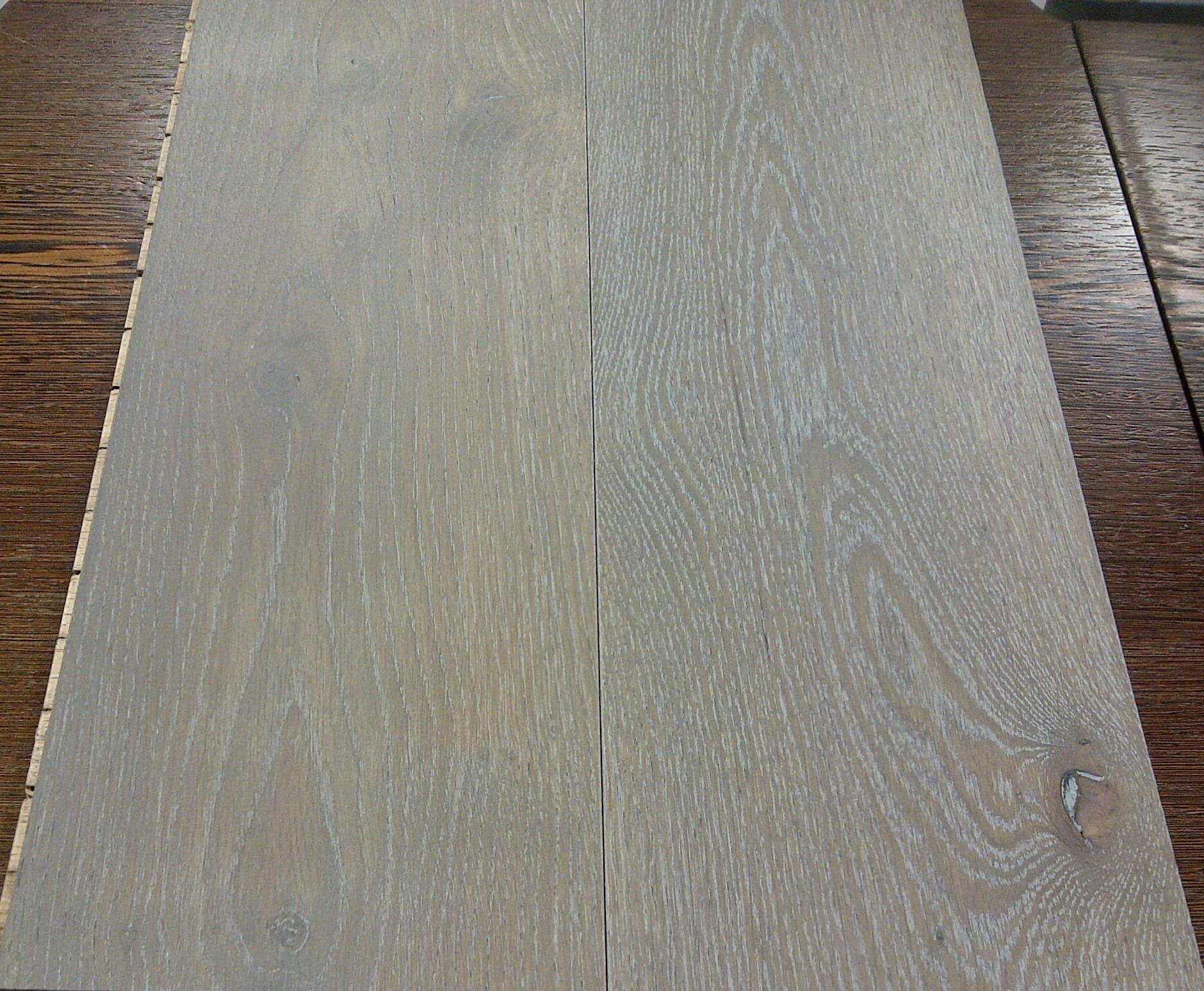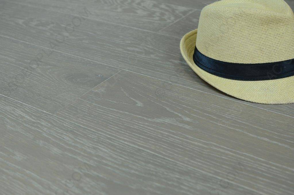 Finition vernie, coloris gris taupe, longueurs et largeurs des lames très tendance pour une ambiance contemporaine.