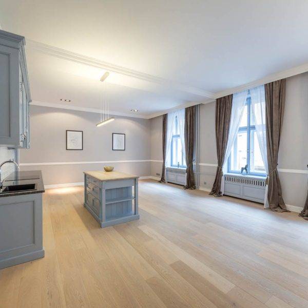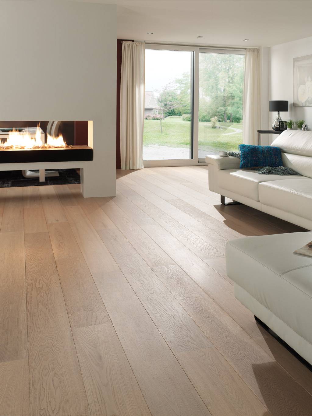 Le parquet contrecollé chêne Oslo "Pure" est clair et très lumineux.