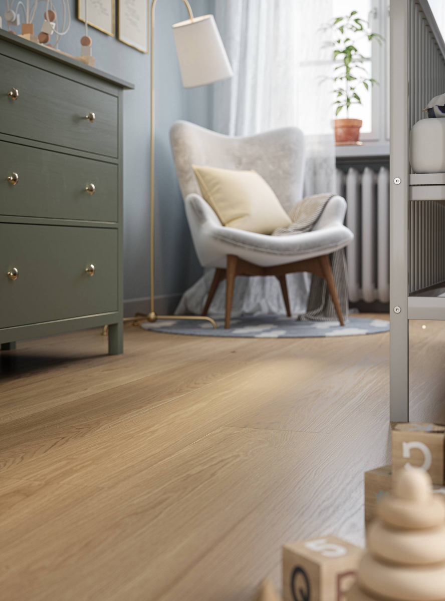 Doté d’un coloris bois naturel au style élégant, ce parquet à l’aspect bois naturel ravira les amoureux de sols épurés et naturels dû à son manque de nœuds. Grâce à son caractère simple et sophistiqué, le parquet Lya éveillera une atmosphère détendue et paisible.
