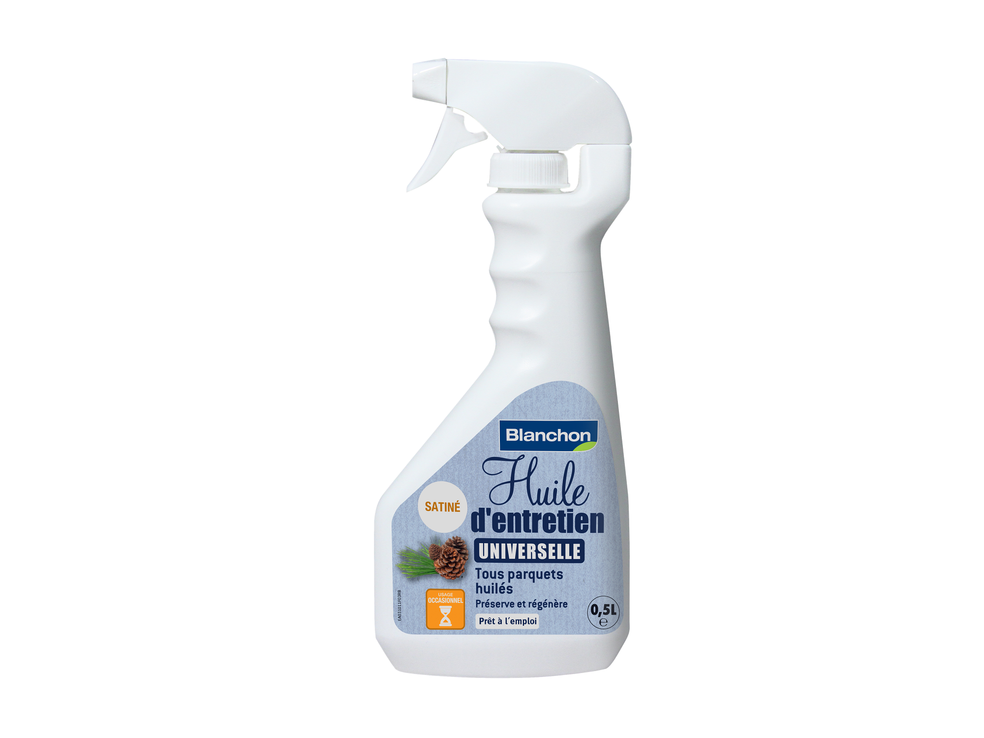 Parmi nos références, l’huile d’entretien universelle Blanchon (spray 0,5 L) est une solution simple, rapide et efficace pour protéger et régénérer vos parquets préalablement huilés.