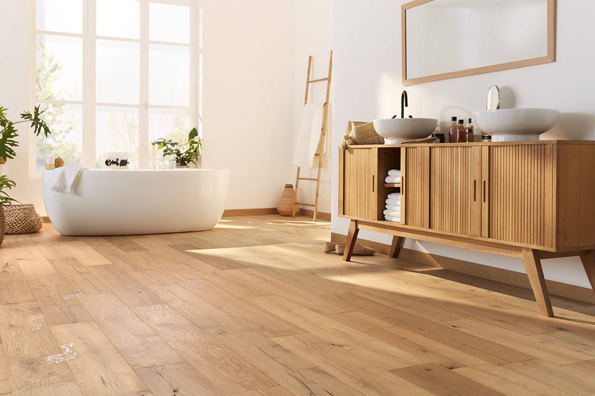 Grâce à son cœur rigide en SPC et sa finition protégée, Stelvio Pure Oak résiste à l’humidité, aux éclaboussures et aux changements de température. Il s’impose donc comme une solution parfaitement adaptée aux salles de bains, cuisines ou entrées.