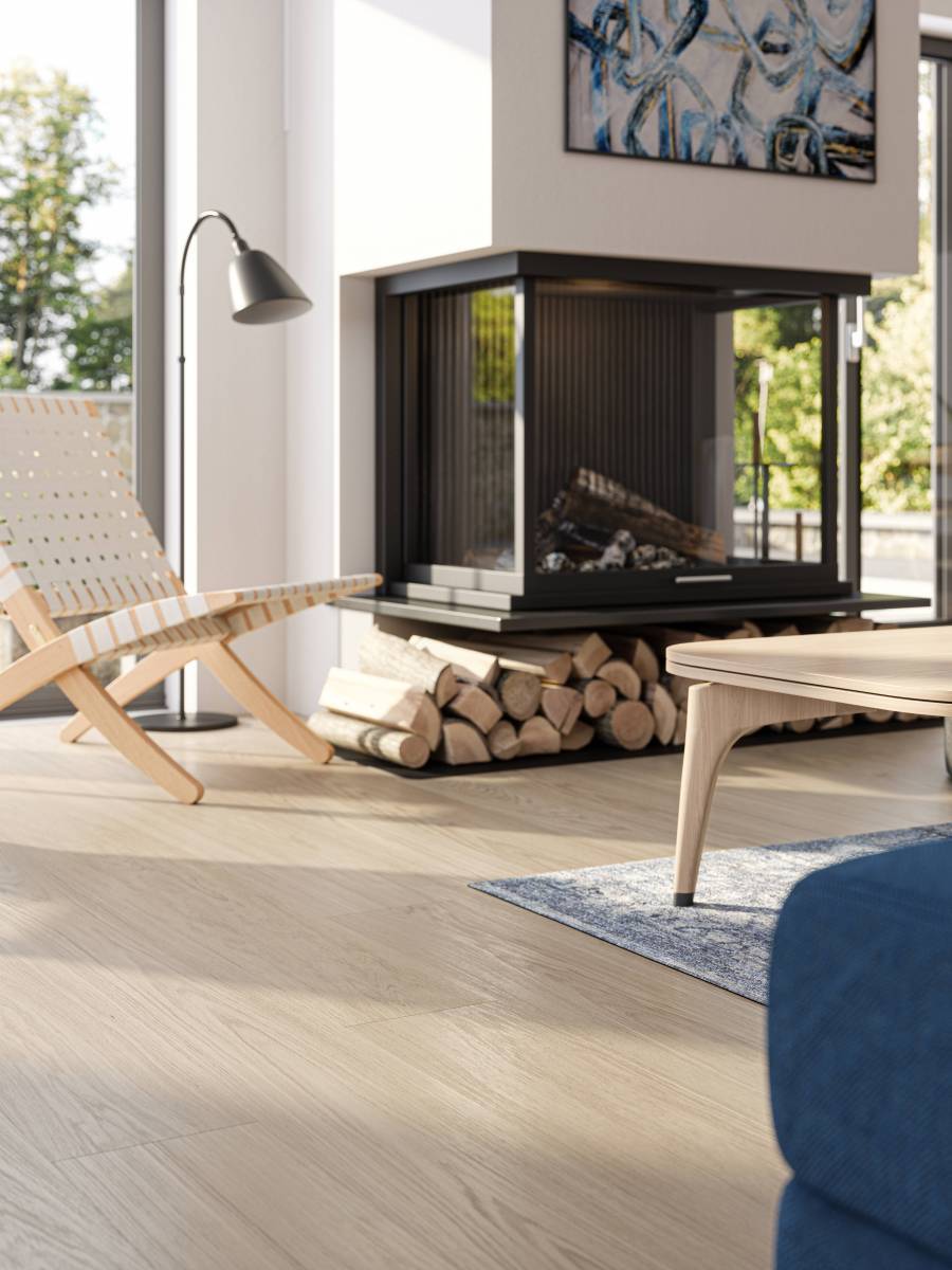 Grâce à sa faible dilatation, ce revêtement de sol est exceptionnellement stable et résiste aux variations d'humidité. Il est donc parfaitement adapté aux pièces à vivre, y compris les cuisines et les salles de bains.